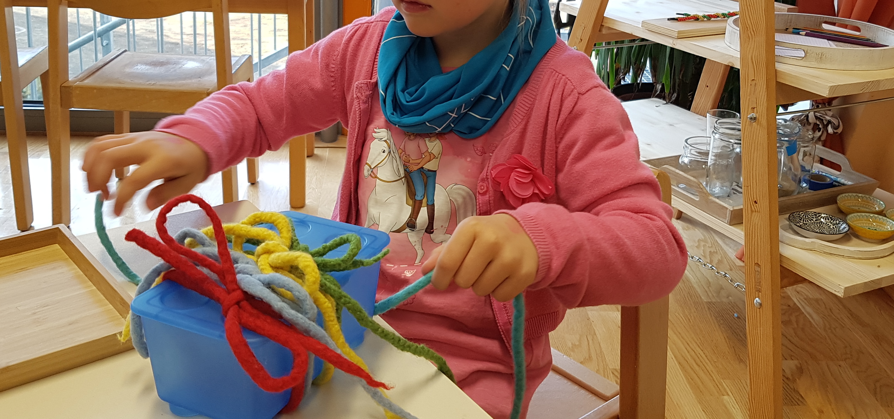 Die Kinder werden von uns begrüßt und ihre Tagesverfassung wahrgenommen. Sie bekommen von uns die Zeit sich zu orientieren und sich nach ihren inneren Bedürfnissen, in der vorbereiteten Umgebung, in den unterschiedlichen Räumlichkeiten, ein Spiel und einen Spielpartner zu suchen.