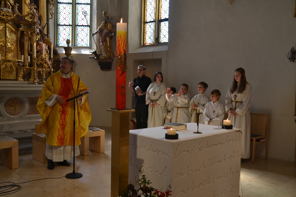Pfarrer Claudiu Budau, der mit der Pfarrgemeinde feierte, freute sich über die Mitwirkung der Musikschule sowie über die Mitgestaltung des Gottesdienstes durch einige Firmlinge, die Kyrie-Gedanken und Fürbitten vortrugen.