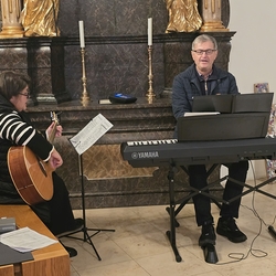 Das harmonische Miteinander spürte man besonders beim Friedensgruß, beim Glaubensbekenntnis, beim Segnen, beim Vater-Unser-Kreis und beim Singen der schönen Lieder. Ein herzliches Danke an Johannes Chum und Ursi Schrei für die einfühlsame musikalische Begleitung!
