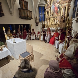 Bevor die Nikoläuse am Vorabend des Nikolaustages „ihren Dienst antraten“, wurden sie von allen in der Kirche anwesenden Kindern und Erwachsenen gesegnet.