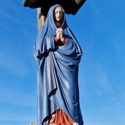 Im Licht der Herbstsonne erstrahlte auch die frisch renovierte Marienstatue, die wenige Tage vor Allerheiligen wieder ihren Platz auf dem Friedhofskreuz einnehmen durfte.